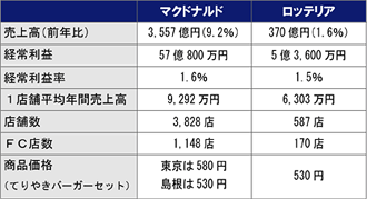 モスは高級志向の新業態「緑モス」の導入でマクドナルドと同じ価格帯での直接対決を避けるが、店舗転換はうまく進んでいない。そこで1980年代までマクドナルド追撃の先頭を走り、経営のテコ入れで復活を目指すロッテリアが対抗馬として注目される。
