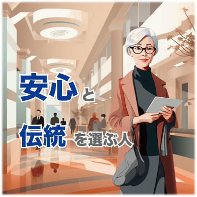 - 「きちんとしていること」「長く続いてきた信頼」を大事にする。落ち着きと安定感を求めるタイプ。