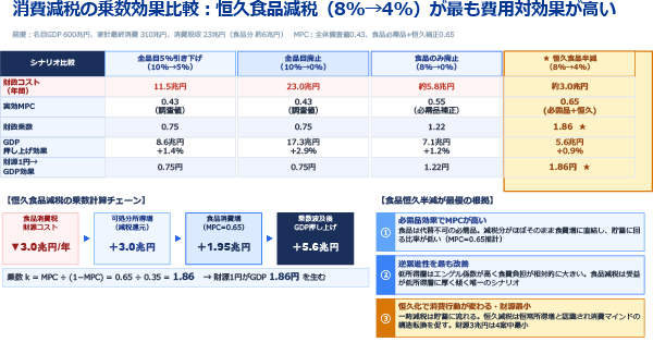 企業としては、食料品減税を所得効果をもたらす機会として捉え、政府の価格プロモーションに対して、価値プロモーションを重ねて、機会を売上として取り込むのが最適策である。こうした企業が増えれば、経済厚生は高まり、経済効果も大きくなる。