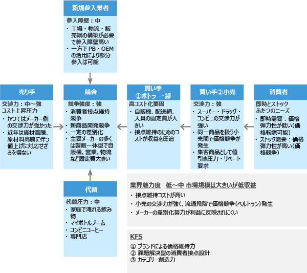 (6)清涼飲料業界の競争の特徴 - 飲用シーン接近のための多大なコストが課題