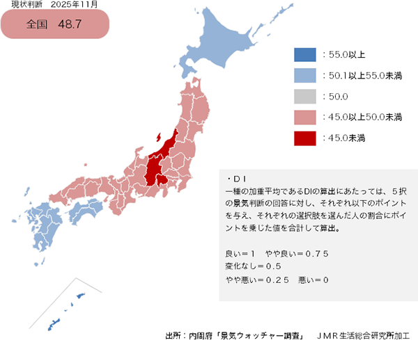 景気ウォッチャー調査・地域別DI現状判断(2025年12月発表)