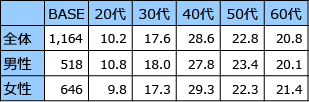 調査対象者:インターネットモニター 20歳~69歳 全国の男女個人